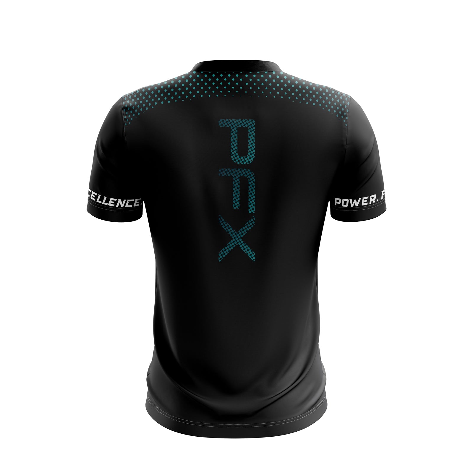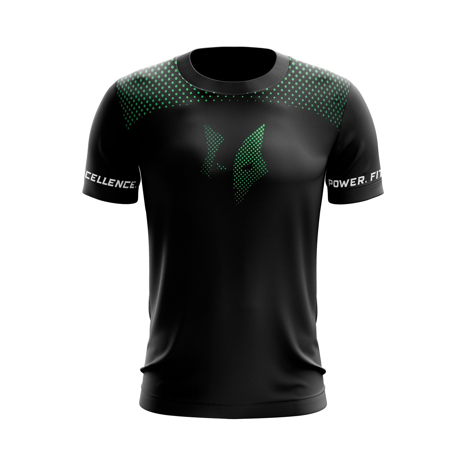 360° Sleeve Branding: Bold "POWER. FITNESS. XCELLENCE" text wraps around the sleeve cuffs, ensuring your commitment is visible from every angle.